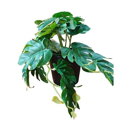 Una versión encantadora de la popular Monstera deliciosa. Sus hojas pequeñas y recortadas, con sus característicos agujeros, imitan a la perfección la belleza natural de su homónima más grande. Sin necesidad de riego constante ni cuidados complicados, esta réplica de alta calidad mantendrá su exuberancia durante todo el año.