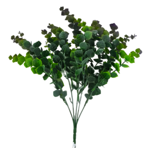 Planta decorativa artificial de tamaño compacto, diseñada para uso en interiores. Fabricada con materiales sintéticos de alta calidad, presenta un follaje realista en tonalidades verdes con detalles en textura y forma que imitan el aspecto natural de las plantas vivas.