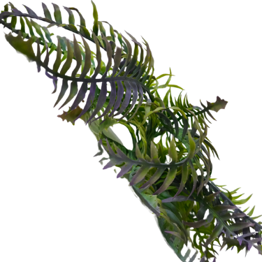 Planta decorativa artificial de tamaño compacto, diseñada para uso en interiores. Fabricada con materiales sintéticos de alta calidad, presenta un follaje realista en tonalidades verdes con detalles en textura y forma que imitan el aspecto natural de las plantas vivas.